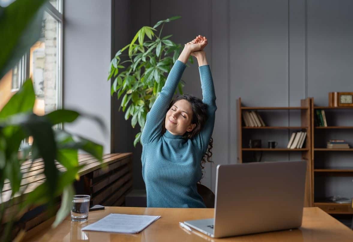 une femme à un bureau s'étire